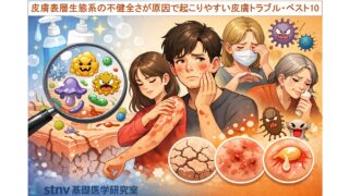 皮膚常在菌 皮膚表層生態系の不健全さが原因で起こりやすい皮膚トラブル・ベスト10 皮膚の乾燥、かゆみ、湿疹、アトピー悪化などの背景には、皮膚表層生態系の不健全さがあります。常在細菌・真菌・ウイルスと皮脂膜が形づくる“生きたバリア”の役割と、乱れたときに起こる皮膚トラブルを整理します。 2026.03.27 皮膚常在菌